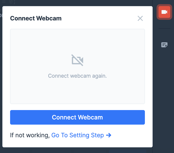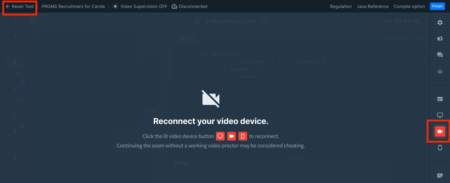Click the red Video Device icon on the right to reconnect inside the test screen.