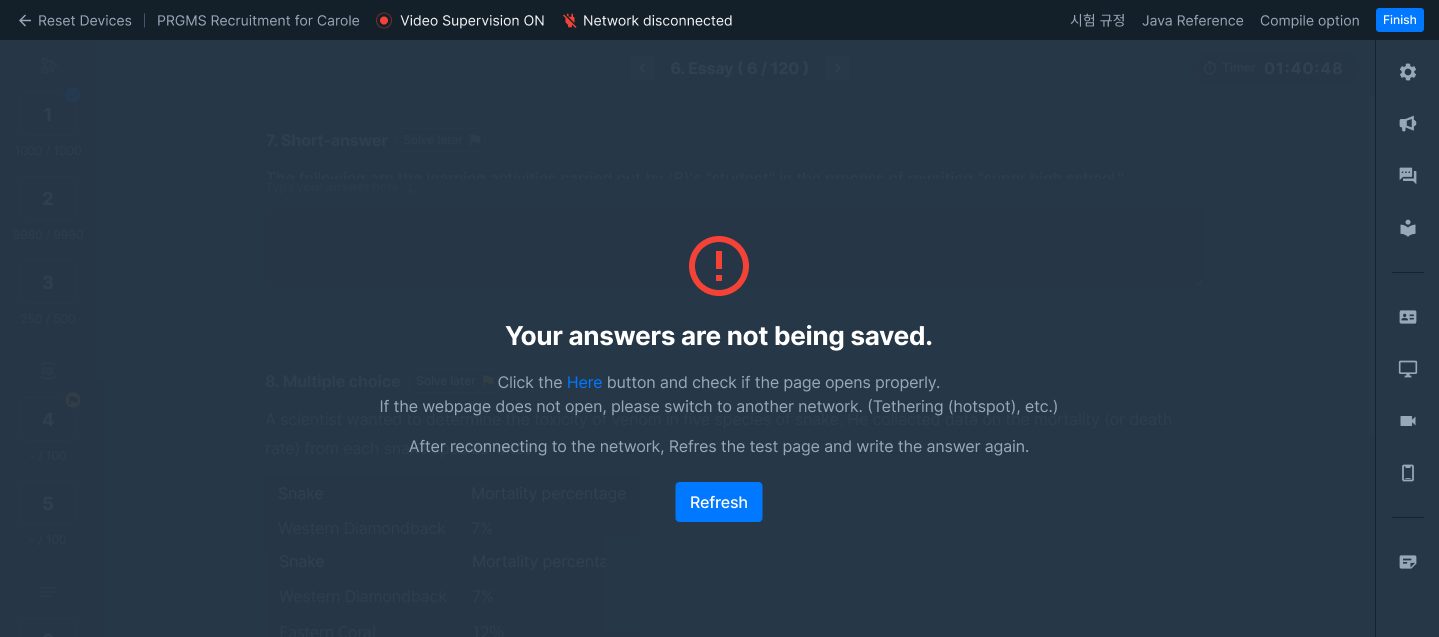 If your network is unstable, your answers may not be saved.