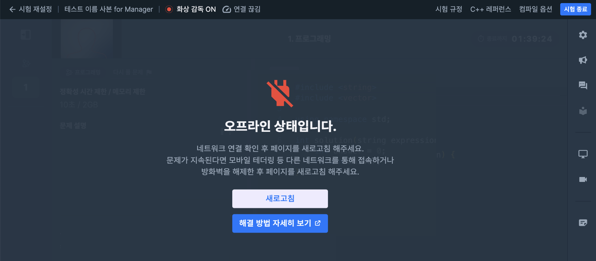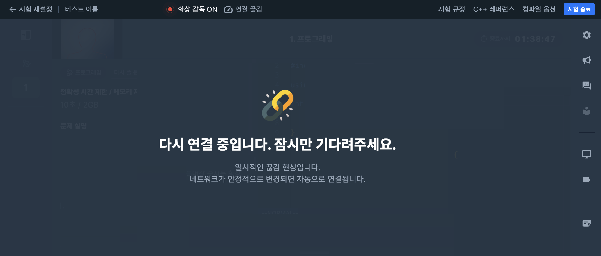 네트워크가 불안정한 경우 원활한 응시가 어려울 수 있습니다.