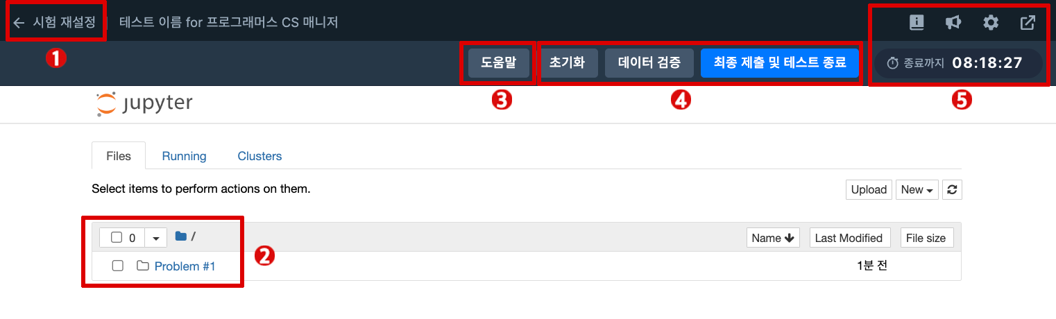 테스트 시간이 끝나기 전에 반드시 최종 제출 및 테스트 종료를 눌러서 테스트를 종료해 주세요. 최종 제출하지 않으면 응시하지 않은 것으로 처리됩니다.